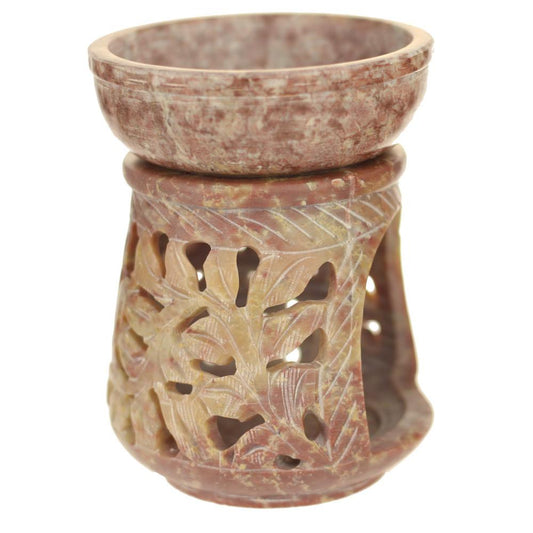 Oil Diffuser - Leaf Engraving Soapstone Aroma Lamp - 4"